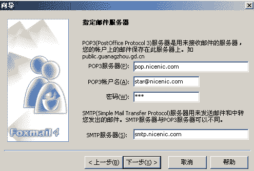 现在我要告诉大家使用的是FOXMAIL4.0如何设置我公司提供的邮件系统。(只要按照我提供的图片来进行设置就可以正确使用了)